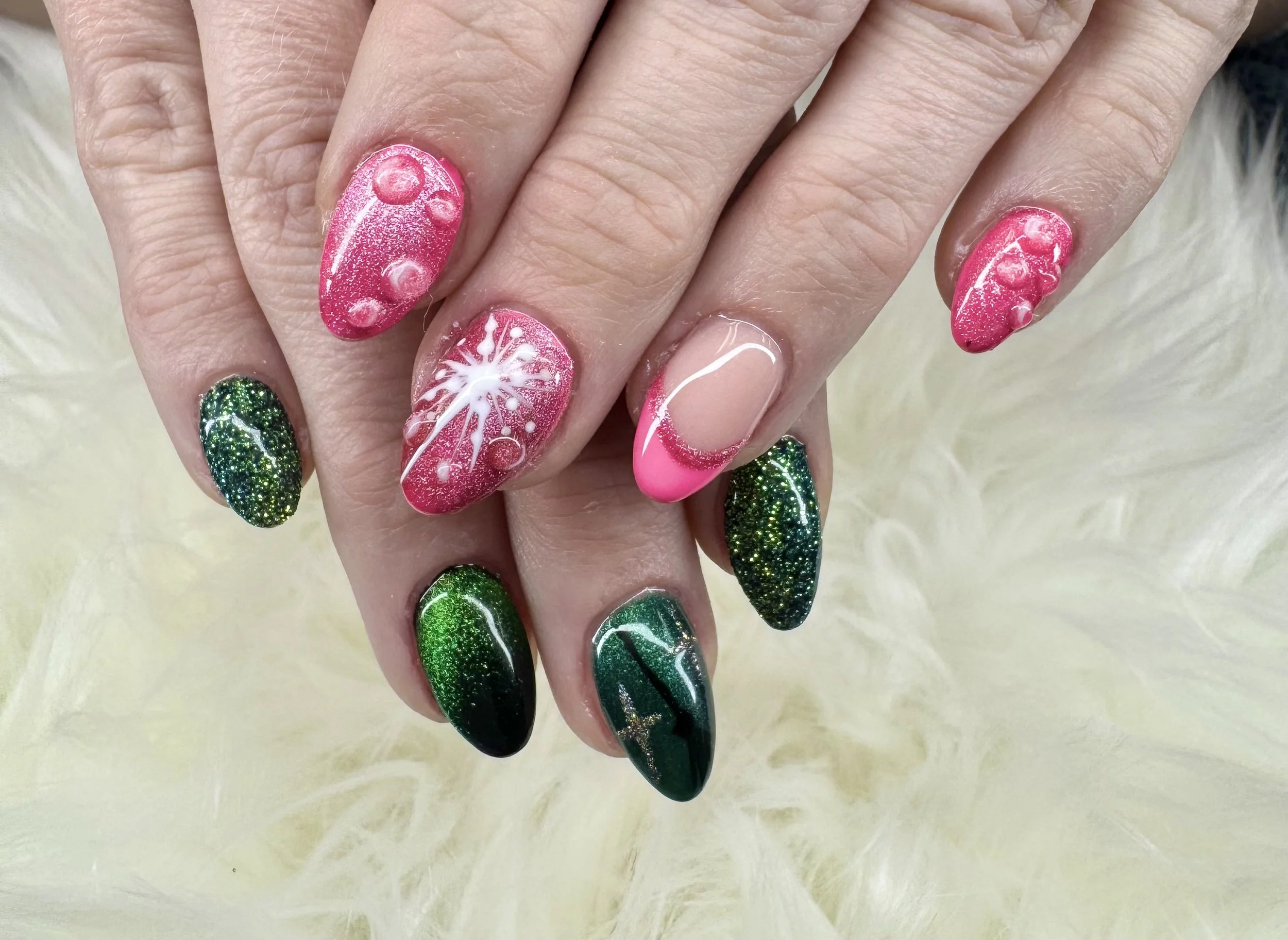 Jamie offers everything from manicures and pedicures to gel, acrylic, and custom nail art (she doesn’t currently do dip, press-ons, or permanent jewelry). Her specialty? Nail art. Whether you’re looking for seasonal themes, custom designs, or something uniquely you, Jamie’s creativity shines in every set she does.
