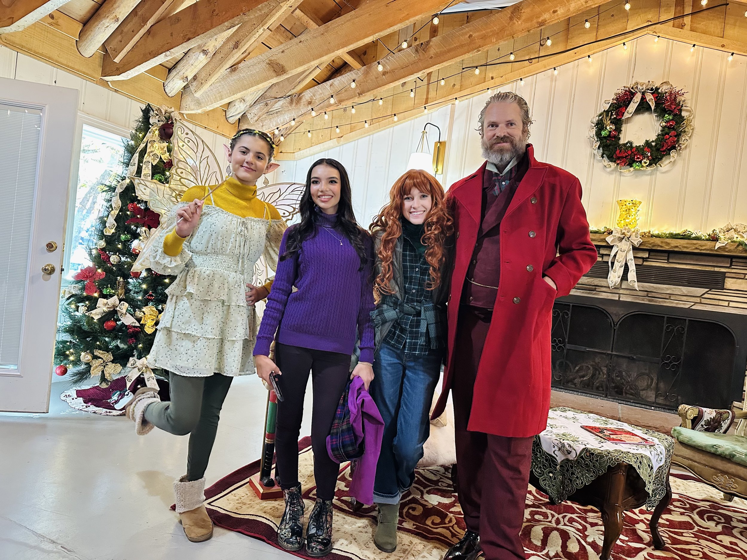 Lux Elizabeth as Mary Lassner, Jayde Martinez as Morgan Asarligt, Brooklyn Summer as Brigid Baelfyre, and James Kirkland as Nick L. Klaus in The Christmas Witch.