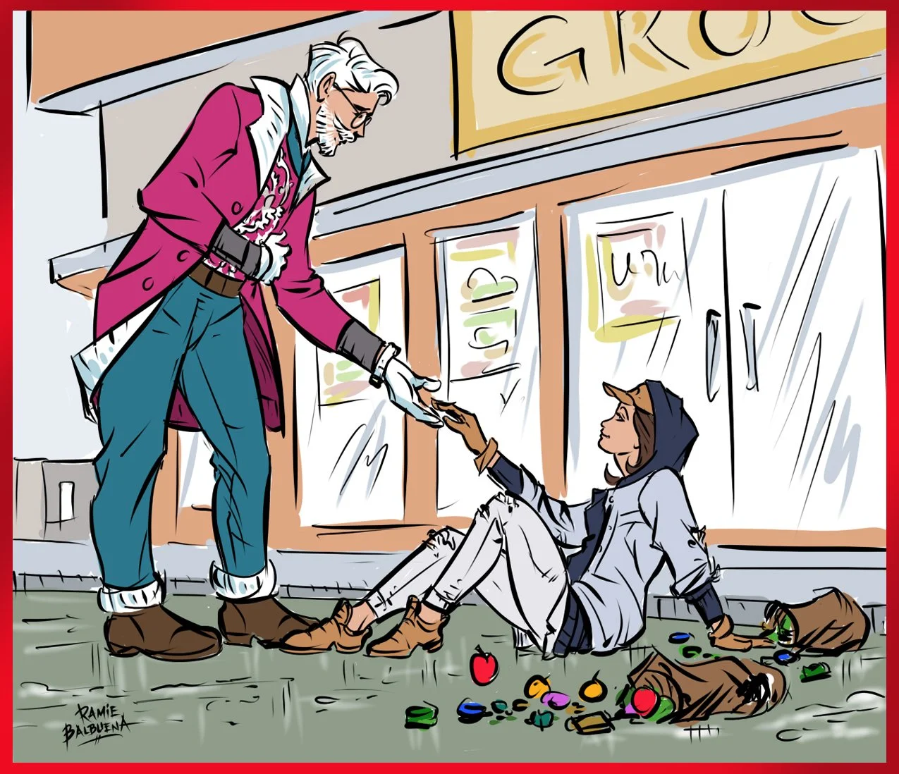Storyboard Concept artwork by Direk Ramie Balbuena of Nick L. Klaus helping Jessi after her grocery bag ripped open.