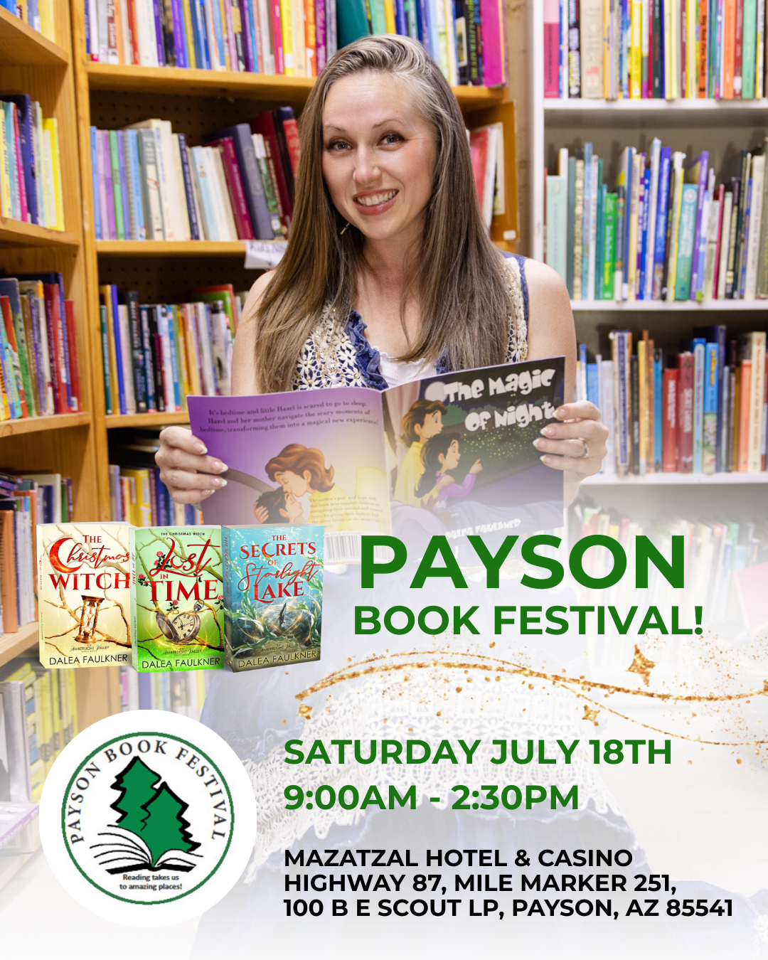 I’m so excited to be attending the Payson Book Festival on July 18, 2026, in beautiful Payson, Arizona. This cozy community event brings together authors and readers for a day filled with books, conversation, and literary discovery.